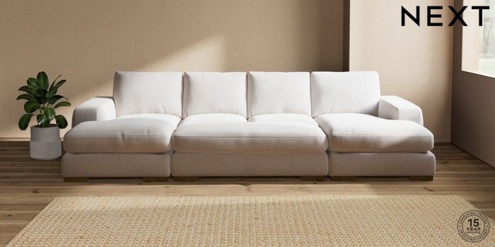 7.3.1 Buy Houghton Deep Relaxed Sit Large - U Shaped Double Chaise with Footstool Cotswold Chenille Oyster Large Square Angle - Mid from the Seasons online shop Click here to use our website with more accessibility support, for example screen readers