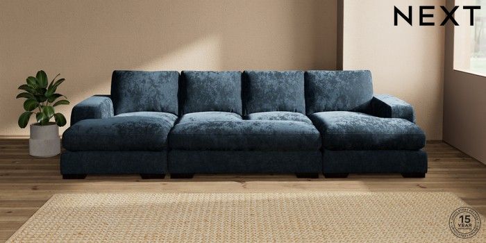 7.3.1 Buy Houghton Deep Relaxed Sit Large - U Shaped Double Chaise with Footstool Distressed Velour Midnight Blue Large Square Angle - Dark from the Seasons online shop Click here to use our website with more accessibility support, for example screen readers