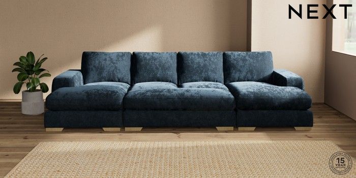 7.3.1 Buy Houghton Deep Relaxed Sit Large - U Shaped Double Chaise with Footstool Distressed Velour Midnight Blue Large Square Angle - Light from the Seasons online shop Click here to use our website with more accessibility support, for example screen readers