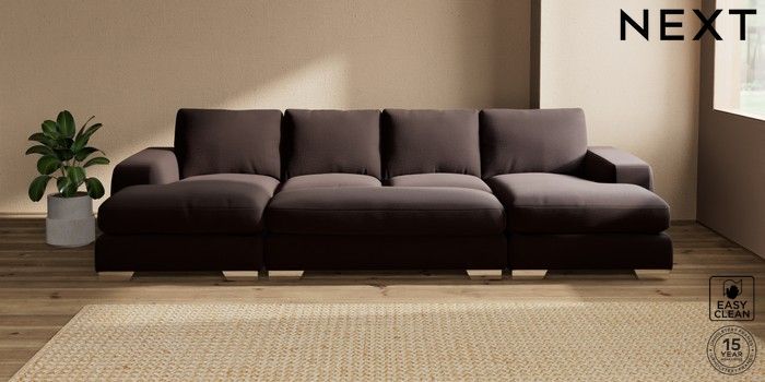 7.3.1 Buy Houghton Deep Relaxed Sit Large - U Shaped Double Chaise with Footstool Fine Chenille Easy Clean Chocolate Brown Large Square Angle - Chrome Metal from the Seasons online shop Click here to use our website with more accessibility support, for example screen readers