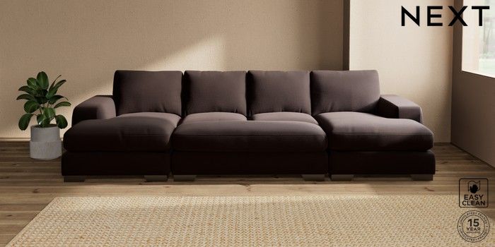 7.3.1 Buy Houghton Deep Relaxed Sit Large - U Shaped Double Chaise with Footstool Fine Chenille Easy Clean Chocolate Brown Large Square Angle - Gunmetal from the Seasons online shop Click here to use our website with more accessibility support, for example screen readers