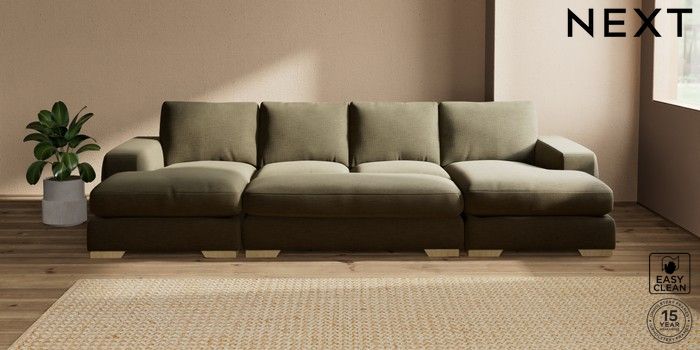 7.3.1 Buy Houghton Deep Relaxed Sit Large - U Shaped Double Chaise with Footstool Fine Chenille Easy Clean Dark Moss Green Large Square Angle - Light from the Seasons online shop Click here to use our website with more accessibility support, for example screen readers