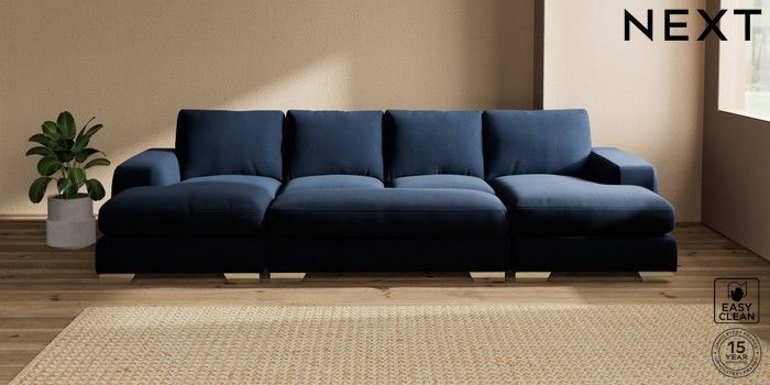 7.3.1 Buy Houghton Deep Relaxed Sit Large - U Shaped Double Chaise with Footstool Fine Chenille Easy Clean Dark Navy Blue Large Square Angle - Chrome Metal from the Seasons online shop Click here to use our website with more accessibility support, for example screen readers
