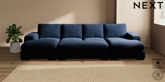 7.3.1 Buy Houghton Deep Relaxed Sit Large - U Shaped Double Chaise with Footstool Fine Chenille Easy Clean Dark Navy Blue Large Square Angle - Dark from the Seasons online shop Click here to use our website with more accessibility support, for example screen readers