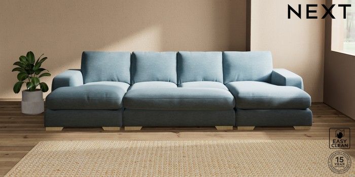 7.3.1 Buy Houghton Deep Relaxed Sit Large - U Shaped Double Chaise with Footstool Fine Chenille Easy Clean Mid Blue Large Square Angle - Light from the Seasons online shop Click here to use our website with more accessibility support, for example screen readers