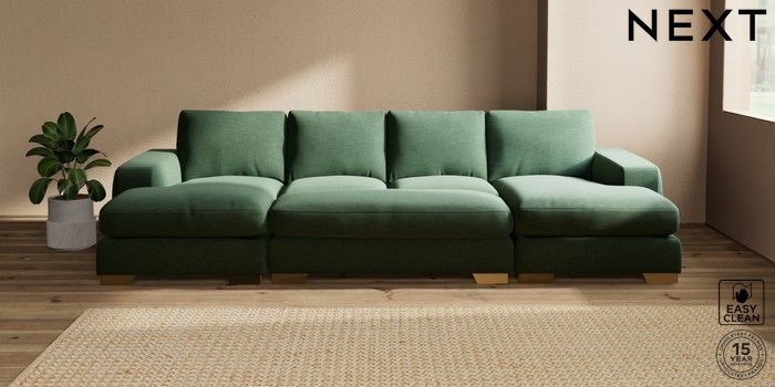 7.3.1 Buy Houghton Deep Relaxed Sit Large - U Shaped Double Chaise with Footstool Fine Chenille Easy Clean Mid Khaki Green Large Square Angle - Brushed Brass from the Seasons online shop Click here to use our website with more accessibility support, for example screen readers