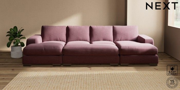 7.3.1 Buy Houghton Deep Relaxed Sit Large - U Shaped Double Chaise with Footstool Fine Chenille Easy Clean Mid Mulberry Purple Large Square Angle - Gunmetal from the Seasons online shop