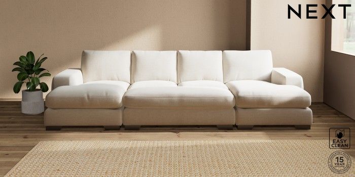7.3.1 Buy Houghton Deep Relaxed Sit Large - U Shaped Double Chaise with Footstool Fine Chenille Easy Clean Oyster Large Square Angle - Gunmetal from the Seasons online shop Click here to use our website with more accessibility support, for example screen readers