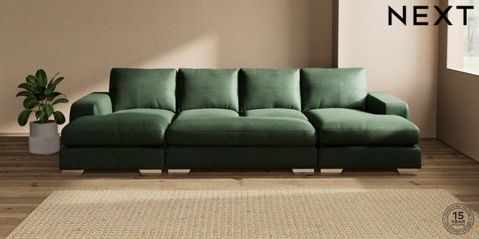 7.3.1 Buy Houghton Deep Relaxed Sit Large - U Shaped Double Chaise with Footstool Luxe Chenille Dark Green Large Square Angle - Chrome Metal from the Seasons online shop Click here to use our website with more accessibility support, for example screen readers