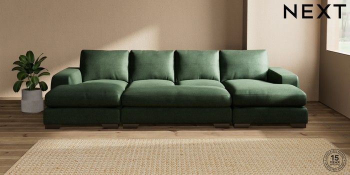 7.3.1 Buy Houghton Deep Relaxed Sit Large - U Shaped Double Chaise with Footstool Luxe Chenille Dark Green Large Square Angle - Gunmetal from the Seasons online shop Click here to use our website with more accessibility support, for example screen readers