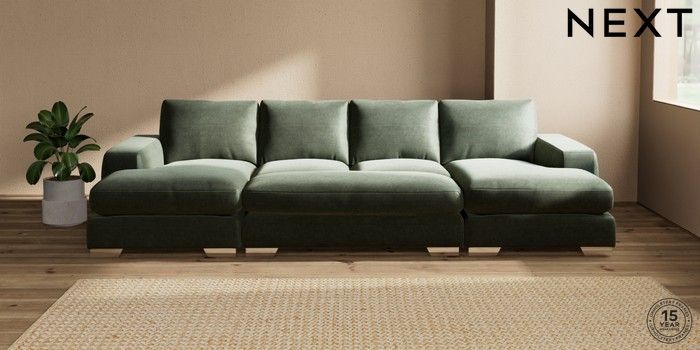 7.3.1 Buy Houghton Deep Relaxed Sit Large - U Shaped Double Chaise with Footstool Luxe Chenille Mid Green Large Square Angle - Chrome Metal from the Seasons online shop Click here to use our website with more accessibility support, for example screen readers