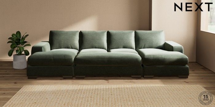 7.3.1 Buy Houghton Deep Relaxed Sit Large - U Shaped Double Chaise with Footstool Luxe Chenille Mid Green Large Square Angle - Gunmetal from the Seasons online shop Click here to use our website with more accessibility support, for example screen readers