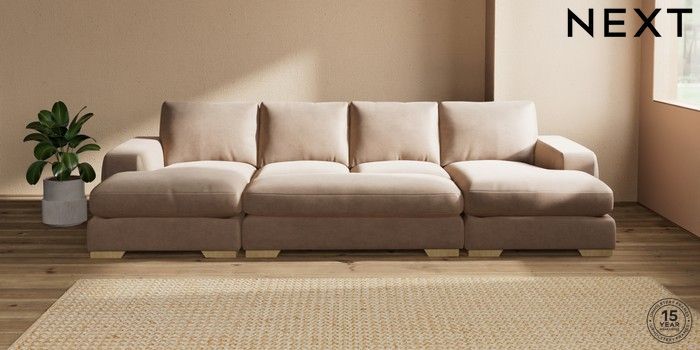 7.3.1 Buy Houghton Deep Relaxed Sit Large - U Shaped Double Chaise with Footstool Luxe Chenille Mid Natural Large Square Angle - Light from the Seasons online shop Click here to use our website with more accessibility support, for example screen readers
