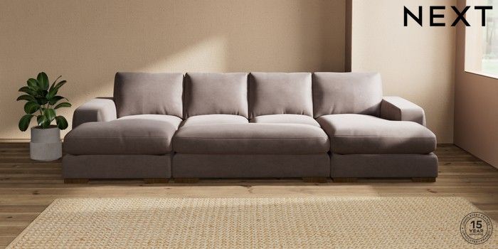 7.3.1 Buy Houghton Deep Relaxed Sit Large - U Shaped Double Chaise with Footstool Luxe Chenille Mink Brown Large Square Angle - Mid from the Seasons online shop Click here to use our website with more accessibility support, for example screen readers