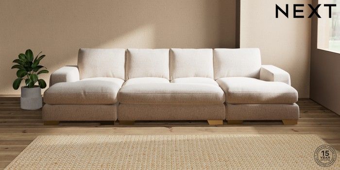 7.3.1 Buy Houghton Deep Relaxed Sit Large - U Shaped Double Chaise with Footstool Multi Weave Mid Natural Large Square Angle - Brushed Brass from the Seasons online shop Click here to use our website with more accessibility support, for example screen readers