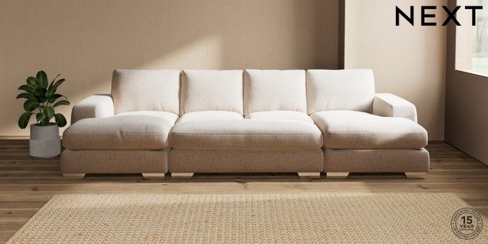 7.3.1 Buy Houghton Deep Relaxed Sit Large - U Shaped Double Chaise with Footstool Multi Weave Mid Natural Large Square Angle - Chrome Metal from the Seasons online shop Click here to use our website with more accessibility support, for example screen readers