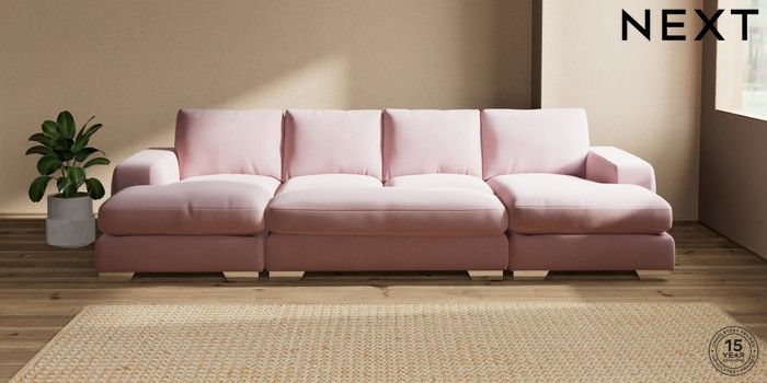 7.3.1 Buy Houghton Deep Relaxed Sit Large - U Shaped Double Chaise with Footstool Natural Mix Light Rose Pink Large Square Angle - Chrome Metal from the Seasons online shop Click here to use our website with more accessibility support, for example screen readers