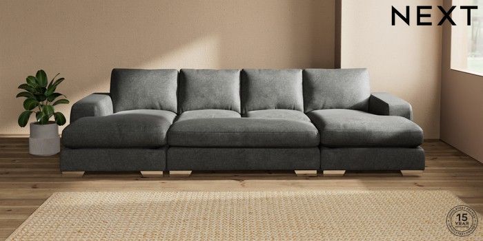 7.3.1 Buy Houghton Deep Relaxed Sit Large - U Shaped Double Chaise with Footstool Plush Chenille Dark Grey Large Square Angle - Chrome Metal from the Seasons online shop Click here to use our website with more accessibility support, for example screen readers