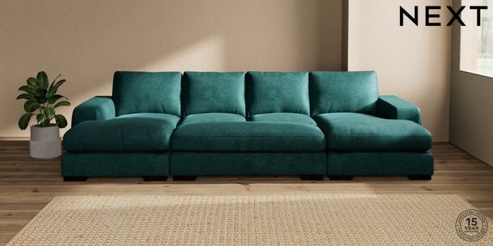 7.3.1 Buy Houghton Deep Relaxed Sit Large - U Shaped Double Chaise with Footstool Plush Chenille Dark Teal Green Large Square Angle - Dark from the Seasons online shop Click here to use our website with more accessibility support, for example screen readers