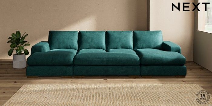 7.3.1 Buy Houghton Deep Relaxed Sit Large - U Shaped Double Chaise with Footstool Plush Chenille Dark Teal Green Large Square Angle - Mid from the Seasons online shop Click here to use our website with more accessibility support, for example screen readers