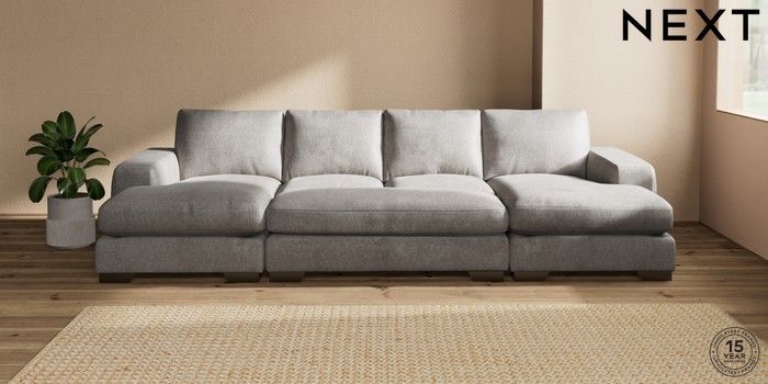 7.3.1 Buy Houghton Deep Relaxed Sit Large - U Shaped Double Chaise with Footstool Plush Chenille Light Grey Large Square Angle - Gunmetal from the Seasons online shop Click here to use our website with more accessibility support, for example screen readers