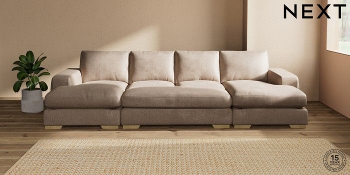 7.3.1 Buy Houghton Deep Relaxed Sit Large - U Shaped Double Chaise with Footstool Plush Chenille Mid Natural Large Square Angle - Light from the Seasons online shop Click here to use our website with more accessibility support, for example screen readers
