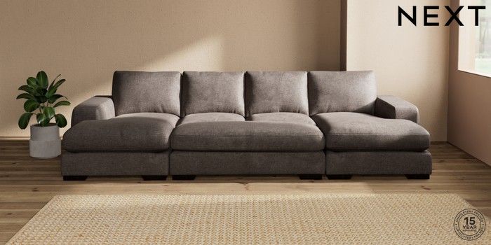 7.3.1 Buy Houghton Deep Relaxed Sit Large - U Shaped Double Chaise with Footstool Plush Chenille Mink Brown Large Square Angle - Dark from the Seasons online shop Click here to use our website with more accessibility support, for example screen readers