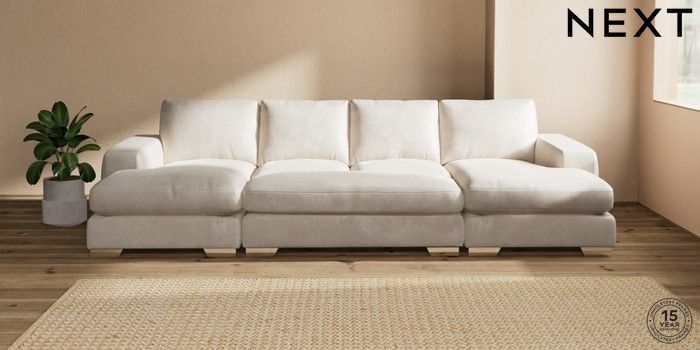 7.3.1 Buy Houghton Deep Relaxed Sit Large - U Shaped Double Chaise with Footstool Plush Chenille Oyster Large Square Angle - Chrome Metal from the Seasons online shop Click here to use our website with more accessibility support, for example screen readers