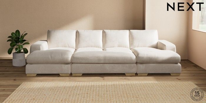7.3.1 Buy Houghton Deep Relaxed Sit Large - U Shaped Double Chaise with Footstool Plush Chenille Oyster Large Square Angle - Light from the Seasons online shop Click here to use our website with more accessibility support, for example screen readers