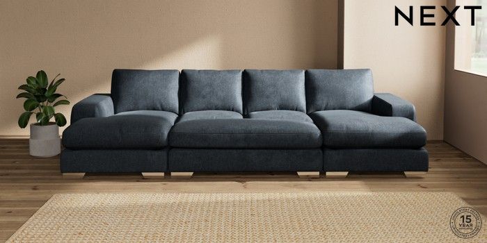 7.3.1 Buy Houghton Deep Relaxed Sit Large - U Shaped Double Chaise with Footstool Plush Chenille Slate Blue Large Square Angle - Chrome Metal from the Seasons online shop Click here to use our website with more accessibility support, for example screen readers