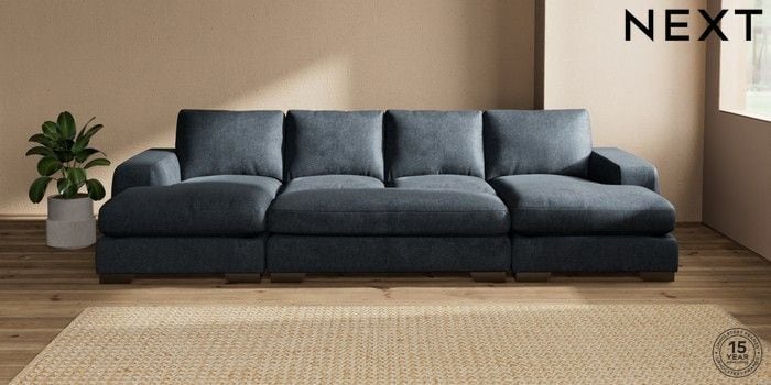 7.3.1 Buy Houghton Deep Relaxed Sit Large - U Shaped Double Chaise with Footstool Plush Chenille Slate Blue Large Square Angle - Gunmetal from the Seasons online shop Click here to use our website with more accessibility support, for example screen readers