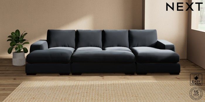 7.3.1 Buy Houghton Deep Relaxed Sit Large - U Shaped Double Chaise with Footstool Plush Velvet Easy Clean Charcoal Grey Large Square Angle - Dark from the Seasons online shop Click here to use our website with more accessibility support, for example screen readers