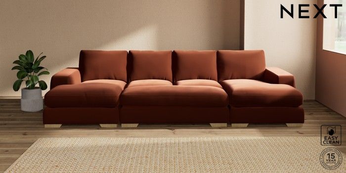 7.3.1 Buy Houghton Deep Relaxed Sit Large - U Shaped Double Chaise with Footstool Plush Velvet Easy Clean Ginger Orange Large Square Angle - Light from the Seasons online shop Click here to use our website with more accessibility support, for example screen readers