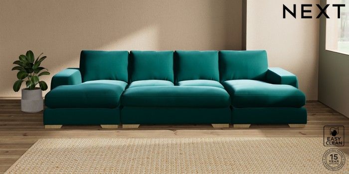 7.3.1 Buy Houghton Deep Relaxed Sit Large - U Shaped Double Chaise with Footstool Plush Velvet Easy Clean Juniper Green Large Square Angle - Light from the Seasons online shop Click here to use our website with more accessibility support, for example screen readers