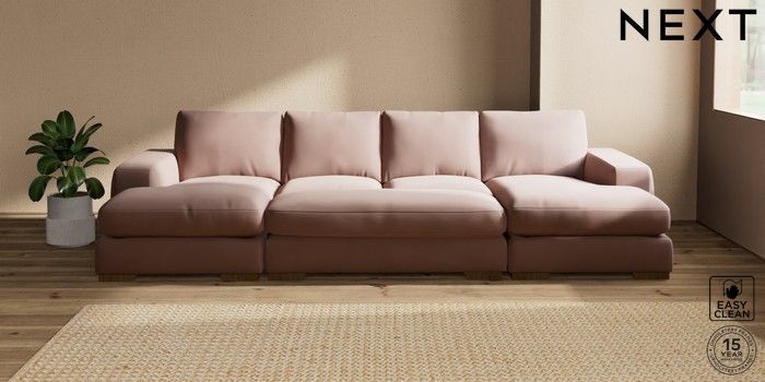 7.3.1 Buy Houghton Deep Relaxed Sit Large - U Shaped Double Chaise with Footstool Plush Velvet Easy Clean Mid Natural Large Square Angle - Mid from the Seasons online shop Click here to use our website with more accessibility support, for example screen readers