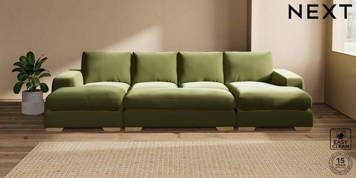 7.3.1 Buy Houghton Deep Relaxed Sit Large - U Shaped Double Chaise with Footstool Plush Velvet Easy Clean Mid Olive Green Large Square Angle - Light from the Seasons online shop Click here to use our website with more accessibility support, for example screen readers