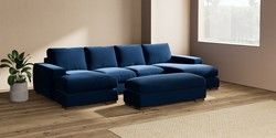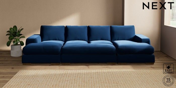 7.3.1 Buy Houghton Deep Relaxed Sit Large - U Shaped Double Chaise with Footstool Plush Velvet Easy Clean Navy Blue Large Square Angle - Mid from the Seasons online shop Click here to use our website with more accessibility support, for example screen readers