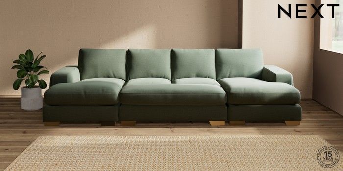 7.3.1 Buy Houghton Deep Relaxed Sit Large - U Shaped Double Chaise with Footstool Relaxed Linen Look Dark Green Large Square Angle - Brushed Brass from the Seasons online shop Click here to use our website with more accessibility support, for example screen readers