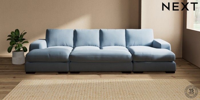 7.3.1 Buy Houghton Deep Relaxed Sit Large - U Shaped Double Chaise with Footstool Relaxed Linen Look Mid Blue Large Square Angle - Dark from the Seasons online shop Click here to use our website with more accessibility support, for example screen readers