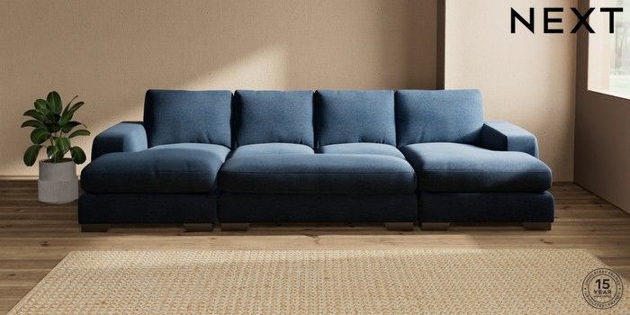 7.3.1 Buy Houghton Deep Relaxed Sit Large - U Shaped Double Chaise with Footstool Ripple Chenille Dark Blue Large Square Angle - Gunmetal from the Seasons online shop Click here to use our website with more accessibility support, for example screen readers