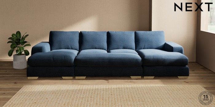 7.3.1 Buy Houghton Deep Relaxed Sit Large - U Shaped Double Chaise with Footstool Ripple Chenille Dark Blue Large Square Angle - Light from the Seasons online shop Click here to use our website with more accessibility support, for example screen readers