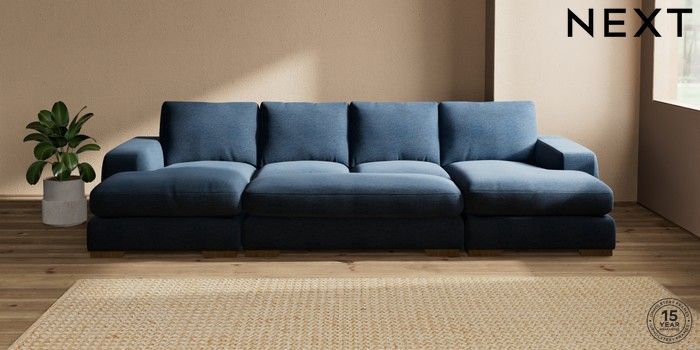 7.3.1 Buy Houghton Deep Relaxed Sit Large - U Shaped Double Chaise with Footstool Ripple Chenille Dark Blue Large Square Angle - Mid from the Seasons online shop Click here to use our website with more accessibility support, for example screen readers
