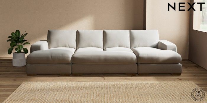 7.3.1 Buy Houghton Deep Relaxed Sit Large - U Shaped Double Chaise with Footstool Ripple Chenille Light Natural Large Square Angle - Mid from the Seasons online shop Click here to use our website with more accessibility support, for example screen readers