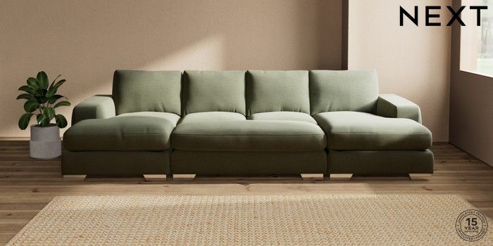 7.3.1 Buy Houghton Deep Relaxed Sit Large - U Shaped Double Chaise with Footstool Ripple Chenille Mid Moss Green Large Square Angle - Chrome Metal from the Seasons online shop Click here to use our website with more accessibility support, for example screen readers