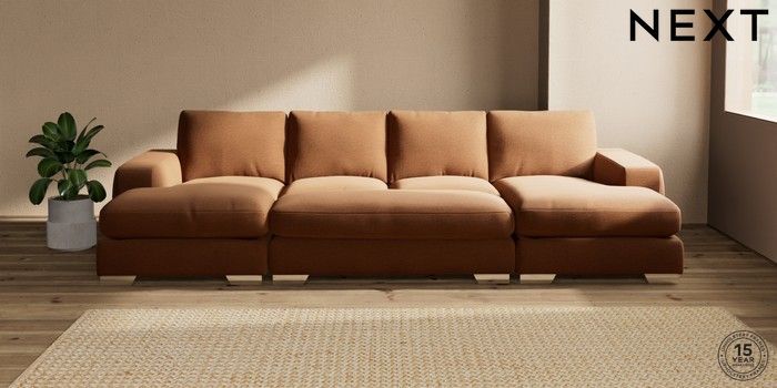 7.3.1 Buy Houghton Deep Relaxed Sit Large - U Shaped Double Chaise with Footstool Ripple Chenille Mid Rust Brown Large Square Angle - Chrome Metal from the Seasons online shop Click here to use our website with more accessibility support, for example screen readers
