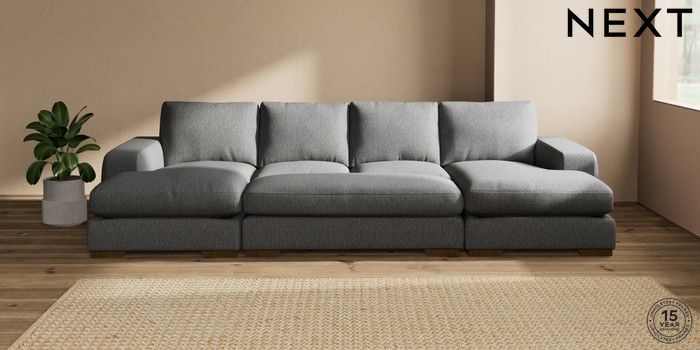 7.3.1 Buy Houghton Deep Relaxed Sit Large - U Shaped Double Chaise with Footstool Tweedy Chenille Dark Grey Large Square Angle - Mid from the Seasons online shop Click here to use our website with more accessibility support, for example screen readers