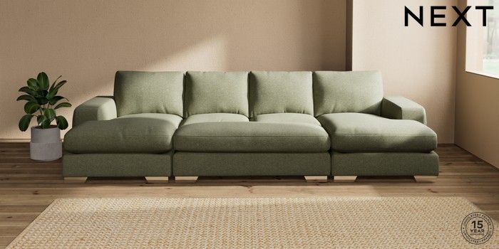 7.3.1 Buy Houghton Deep Relaxed Sit Large - U Shaped Double Chaise with Footstool Tweedy Chenille Mid Moss Green Large Square Angle - Chrome Metal from the Seasons online shop Click here to use our website with more accessibility support, for example screen readers
