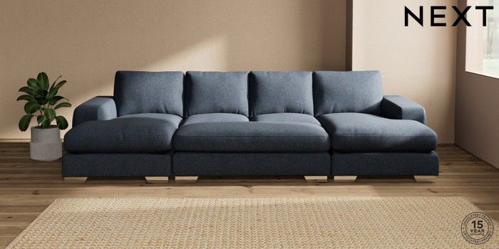 7.3.1 Buy Houghton Deep Relaxed Sit Large - U Shaped Double Chaise with Footstool Tweedy Chenille Navy Blue Large Square Angle - Chrome Metal from the Seasons online shop Click here to use our website with more accessibility support, for example screen readers