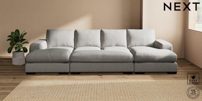7.3.1 Buy Houghton Deep Relaxed Sit Large - U Shaped Double Chaise with Footstool Woven Chenille Easy Clean Light Grey Large Square Angle - Dark from the Seasons online shop Click here to use our website with more accessibility support, for example screen readers