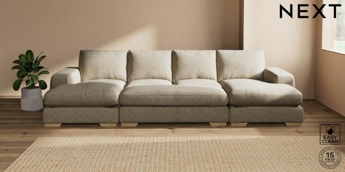 7.3.1 Buy Houghton Deep Relaxed Sit Large - U Shaped Double Chaise with Footstool Woven Chenille Easy Clean Mid Natural Large Square Angle - Light from the Seasons online shop Click here to use our website with more accessibility support, for example screen readers